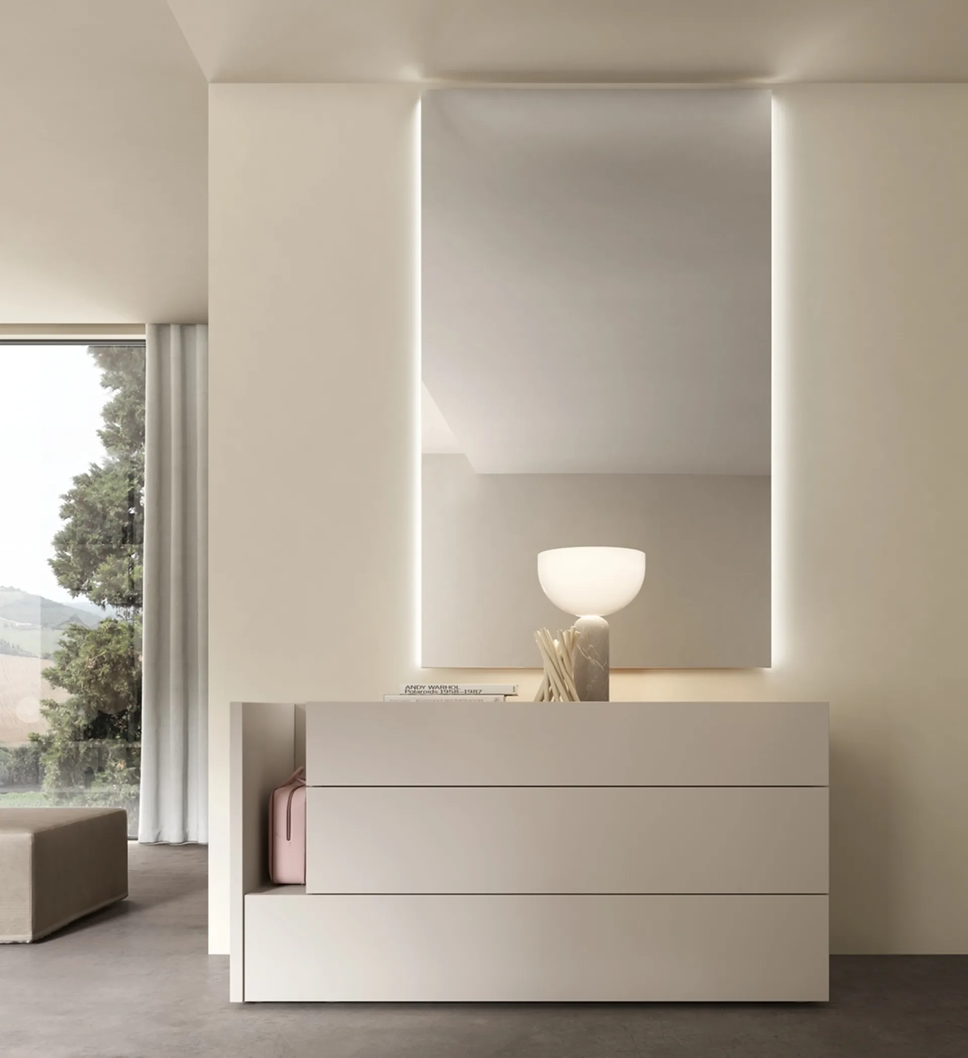 Molto versatili e plurifunzionali, i Complementi moderni senza cornice rispondono a funzioni diversificate: completano le doti di funzionalità e l'estetica del locale. Nel nostro punto vendita potrai toccare con mano l'eccellenza dei modelli di specchi moderni senza cornice della firma, proprio come questa proposta in foto. Le composizioni arredative di grande fascino del brand Maronese personalizzano l'ambiente con colore e gusto, ricreando peculiari atmosfere arredative. Specchiera Filo di Maronese senza cornice: aggiungerà carattere e fascino a un interno ammobiliato con mobili e oggetti accessori dai richiami moderni.