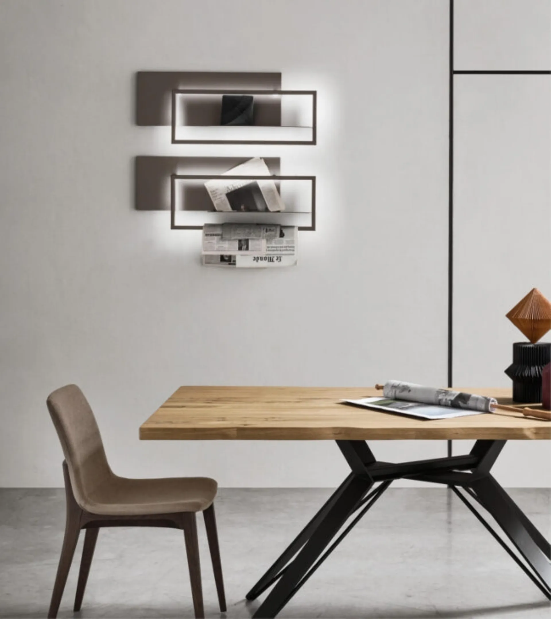 Nel nostro showroom potrai visionare in prima persona la qualità dei modelli di mensole design in metallo dell'azienda, proprio come questa proposta in foto. Complementi e mensole completano l'arredo di casa, occupando lo spazio in modo utile e rendendolo assai funzionale e di grande valore estetico. Altamente versatili e plurifunzionali, i Complementi design in metallo rispondono a funzioni disparate: completano le doti di funzionalità e l'estetica del locale. Mensola di design Lux di Maronese in metallo: conferirà carattere e fascino a un locale arredato con mobili e complementi dai richiami design.