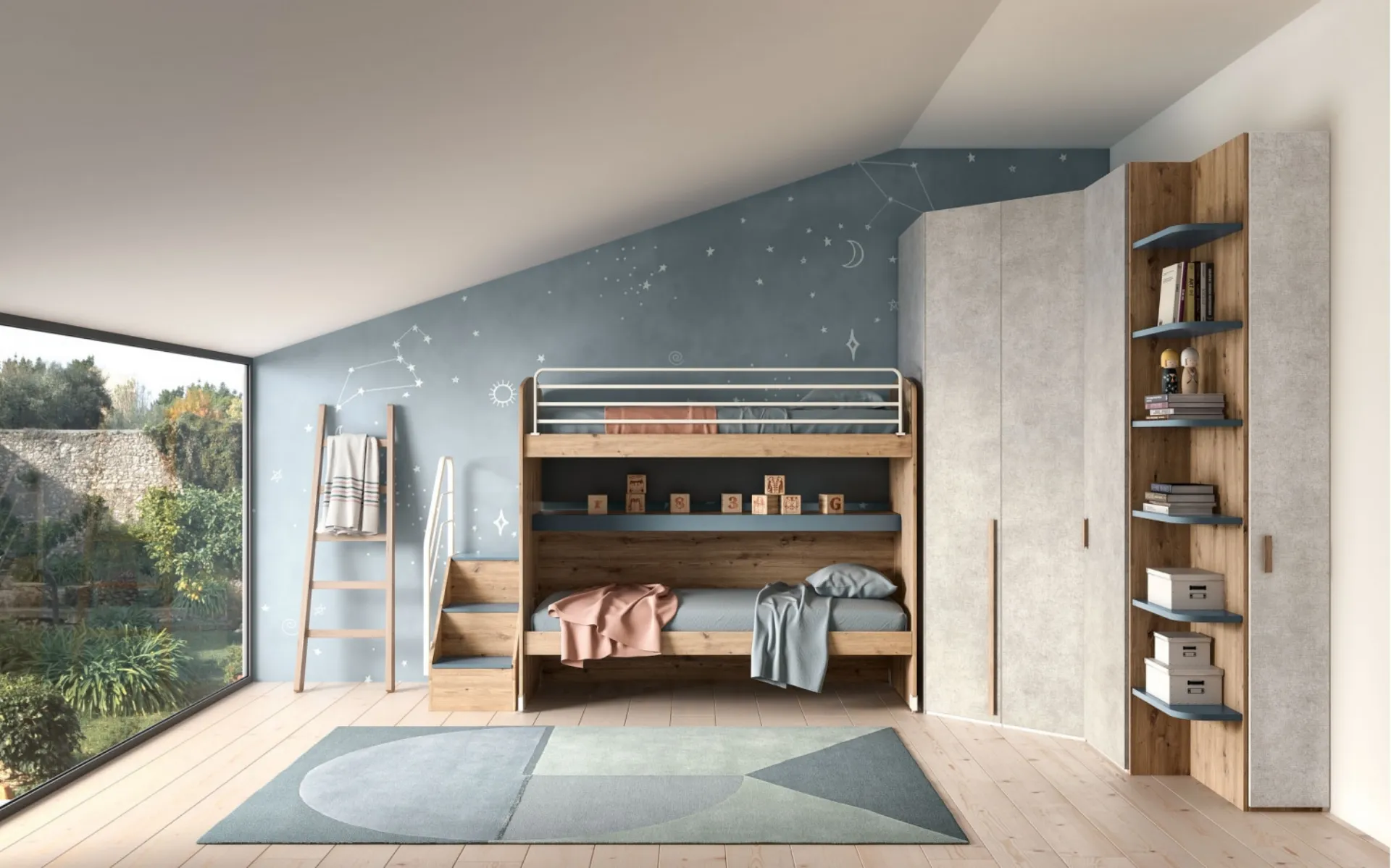 Questa proposta in melaminico ultima ottimamente le doti pratiche e l'estetica della camaretta, in quanto è capace di unire ergonomia e sicurezza. Se cerchi spunti progettuali per arredare ottimamente la stanza dei tuoi figli, ti proponiamo la Camera con letto a castello Room 160 di Zg Mobili con finitura in melaminico. Porta design e cromie vivaci nella stanza dedicata ai bambini con questa proposta, una tra le Camerette con letti a castello per ragazzi di Zg Mobili. Nella progettazione della stanza dei giovani affidati a noi: in negozio proponiamo tutte le più esclusive composizioni moderne per la loro camera.