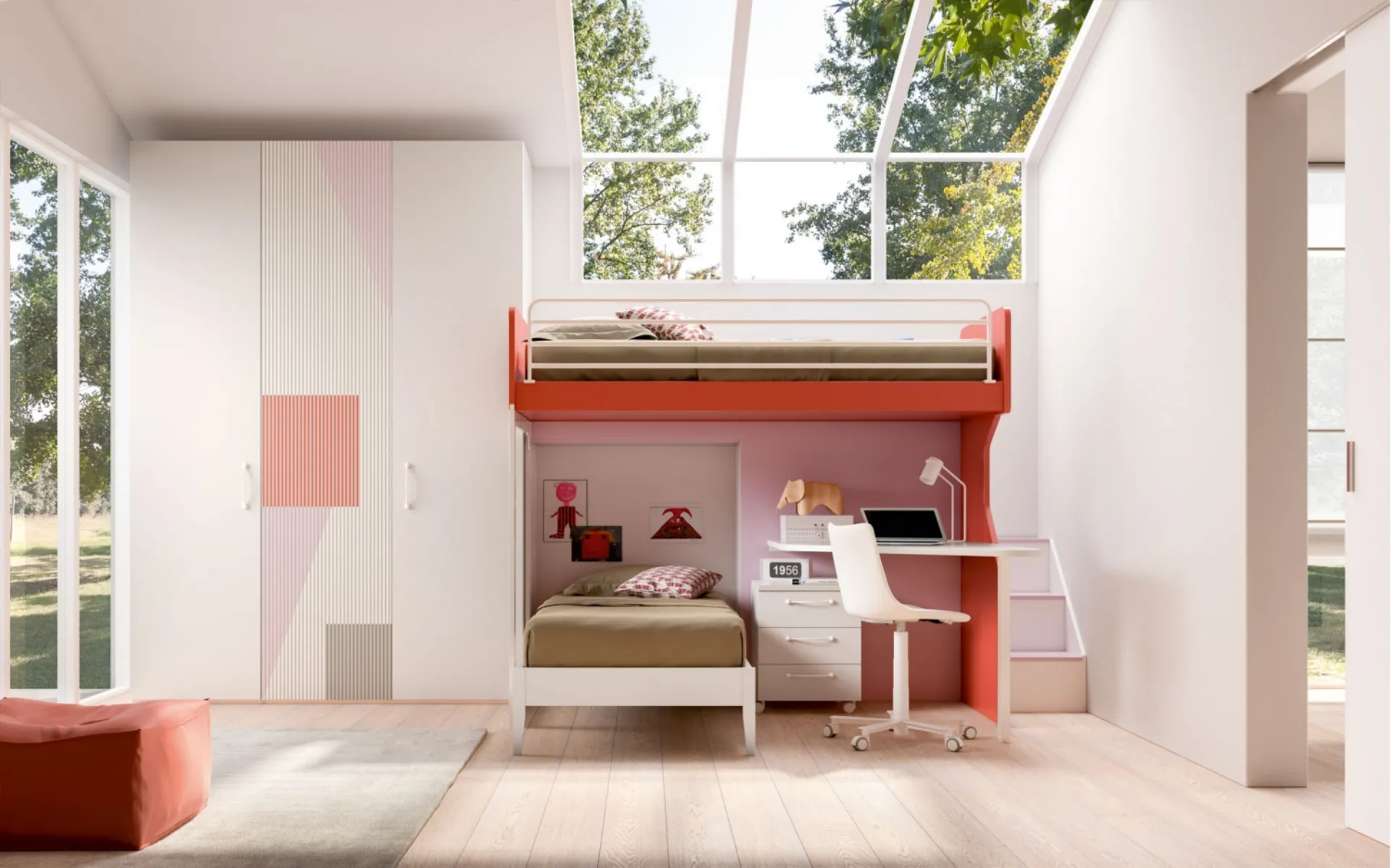 Materiali di qualità e pitture ecologiche connotano le proposte del marchio, tra cui troverai anche quelle moderne a soppalco ideali per te. Gli accessori disponibili per le Camerette a soppalco di Zg Mobili sono sempre personalizzabili, per scongiurare qualunque problematicità di spazio e praticità. Scopri nel nostro punto vendita la Camera con soppalco Room 168 di Zg Mobili in melaminico: si adatta a ricreare perfettamente un ambiente accogliente, bello e ben organizzato. Se la stanza ha dimensioni contenute, sono differenti le soluzioni che Zg Mobili presenta, sempre in grado di unire ergonomia e sicurezza.