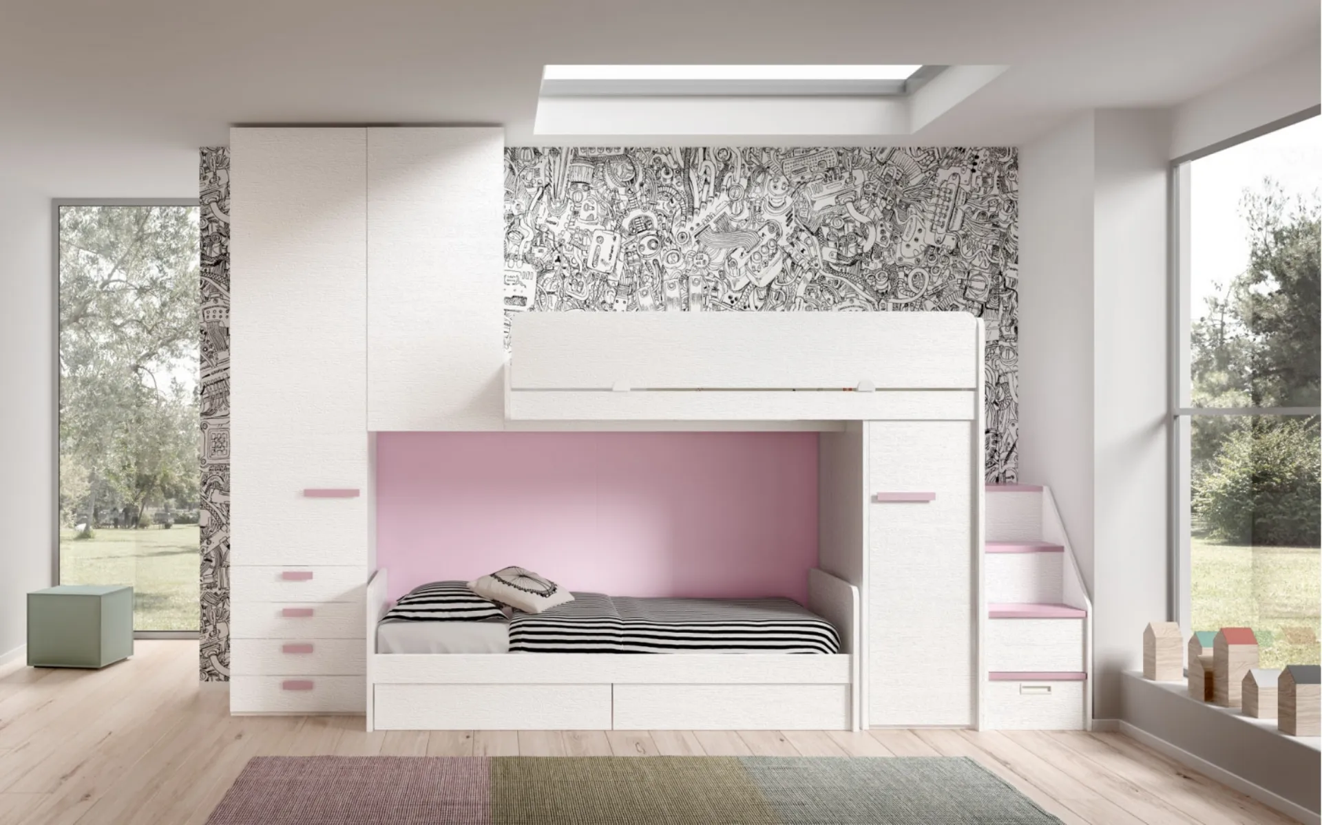 Per arredare perfettamente le Camerette, Zg Mobili offre soluzioni progettuali e multifunzionali: sono tante le attività che i tuoi bambini svolgono lì. Con la Camera con soppalco Room 171 di Zg Mobili renderai la stanza dei tuoi figli un interno davvero funzionale e sicuro, che li accompagnerà mentre diventano grandi. Il noto brand produce svariate soluzioni moderne, così la cameretta risulterà una stanza dove i piccoli saranno contenti di crescere e riposare. Visitare il nostro negozio vuole dire vedere dal vivo tutte le più esclusive soluzioni per ragazzi a soppalco in melaminico che presentiamo in negozio.