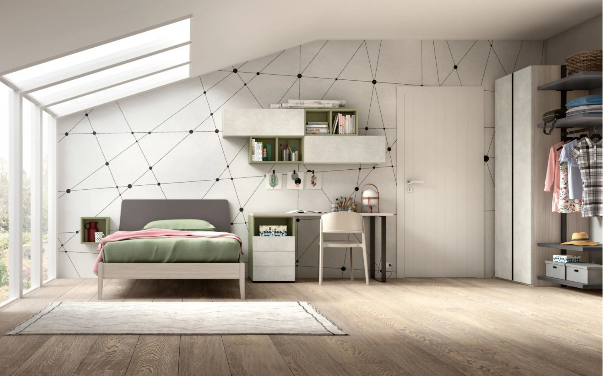 La Cameretta per ragazzi Room 110 di Zg Mobili in melaminico è un universo articolato da organizzare attentamente, unendo differenti accessori su misura. Tonalità di tendenza e progetti articolati eccellenti connotano le più originali proposte del noto e conosciuto marchio che proponiamo nel nostro punto vendita. Vieni nel nostro punto vendita e potrai vedere dal vivo tutte le più originali composizioni d'arredo componibili moderne di Zg Mobili per i più piccoli. Con una composizione arredativa Zg Mobili, potrai completare con praticità e design il luogo nel quale i tuoi figli trascorrono gli anni importanti della vita.