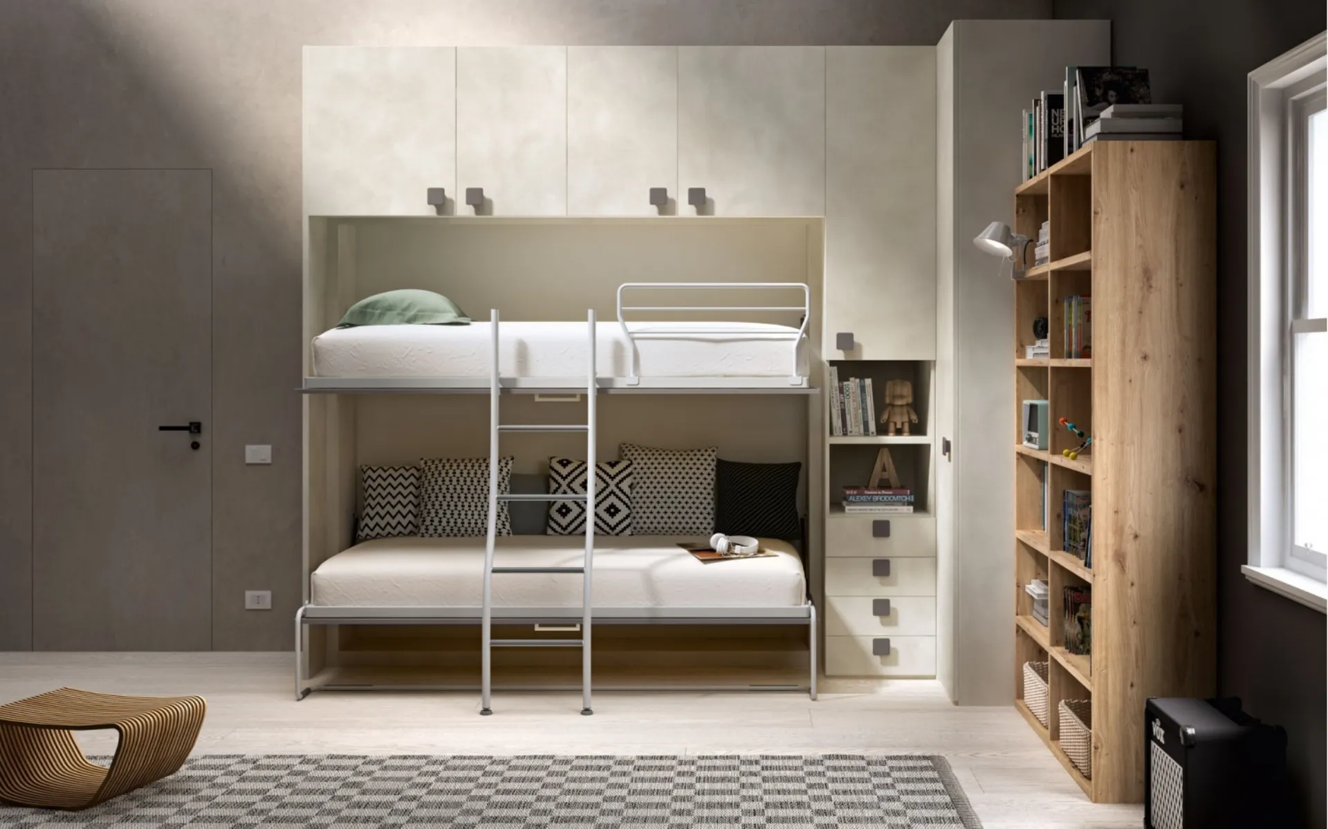 Tonalità di tendenza e progetti articolati eccellenti contraddistinguono le più esclusive composizioni del noto e conosciuto brand che presentiamo in negozio. Zg Mobili asseconda il gusto dei piccoli e i desideri dei genitori con le sue Camerette moderne salvaspazio, ideali per necessità di ogni genere. Con una composizione arredativa Zg Mobili, potrai ultimare con praticità e design il luogo nel quale i tuoi bambini trascorrono gli anni importanti della vita. La Camera salvaspazio Room 152 di Zg Mobili in melaminico è un universo complesso da organizzare con cura, mixando diversi elementi accessori su misura.