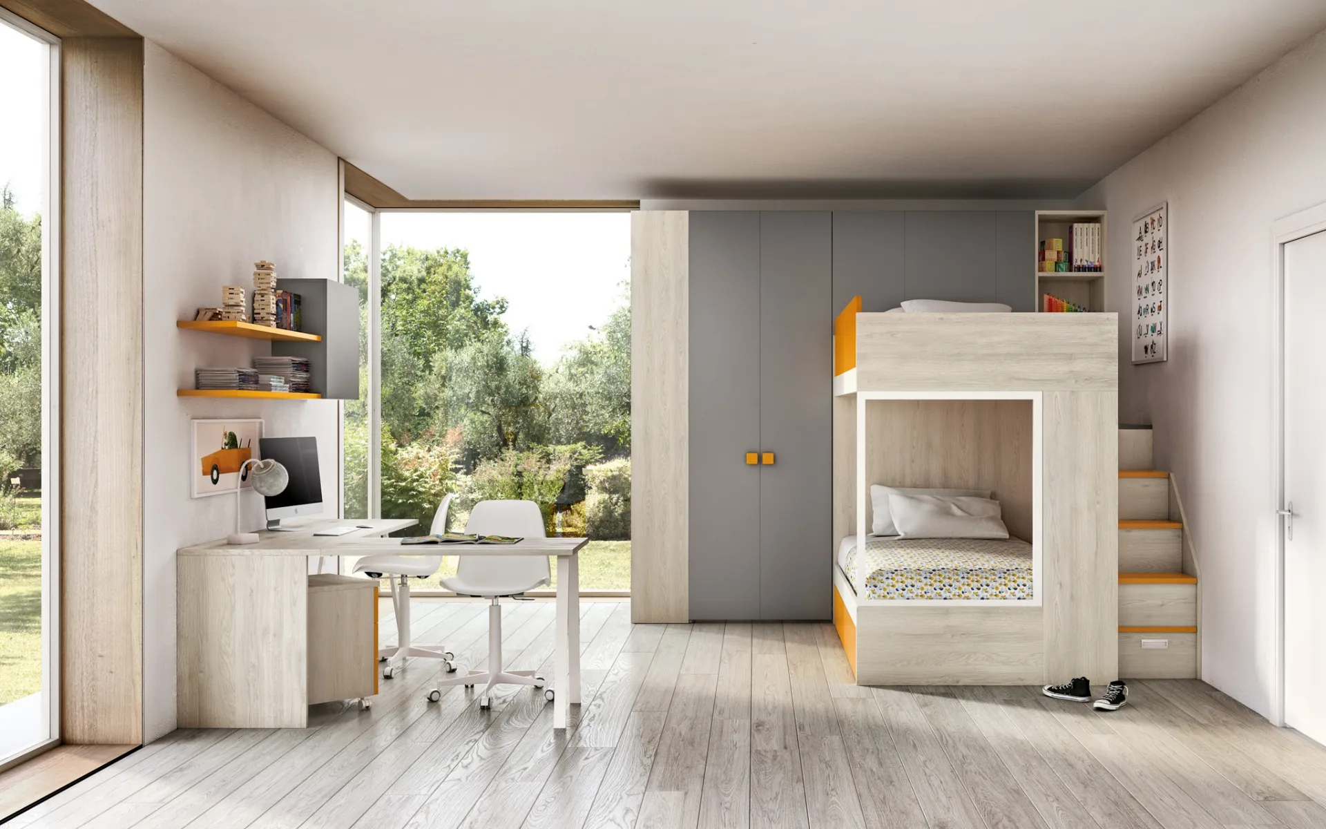 Questa proposta con finitura in melaminico, tra quelle con letti a castello per bambini di Zg Mobili, soddisfa le necessità degli adulti e i gusti dei piccoli. Visitarci vuole dire toccare con mano tutte le più originali soluzioni per bambini con letti a castello in melaminico che presentiamo nel nostro punto vendita. Con la Cameretta con letti a castello 214 di Zg Mobili renderai la stanza dei tuoi figli un interno davvero funzionale e sicuro, che li seguirà nella crescita. Il conosciuto brand realizza molteplici soluzioni moderne, in tal modo la cameretta diventa un locale dove i piccoli possono crescere e sognare.