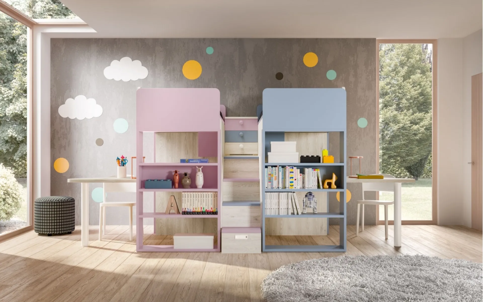 Proponiamo nel nostro showroom diverse Camerette a soppalco moderne per bambini del brand, ideali per accompagnarli durante il loro sviluppo. In negozio ci occupiamo di seguirti dalla scelta dei mobili per la camera alla progettazione del luogo nel quale i tuoi bimbi cresceranno, giocando e sognando. Le Camerette dei nostri bambini sono lo spazio in cui diventeranno grandi giocando e sognando, quindi è imprescindibile che lo spazio sia ben organizzato. Con la Camera con soppalco Room 165 di Zg Mobili in melaminico ti garantirai un perfetto accordo di funzionalità ed ergonomia, ideale per la stanza dei tuoi bambini.