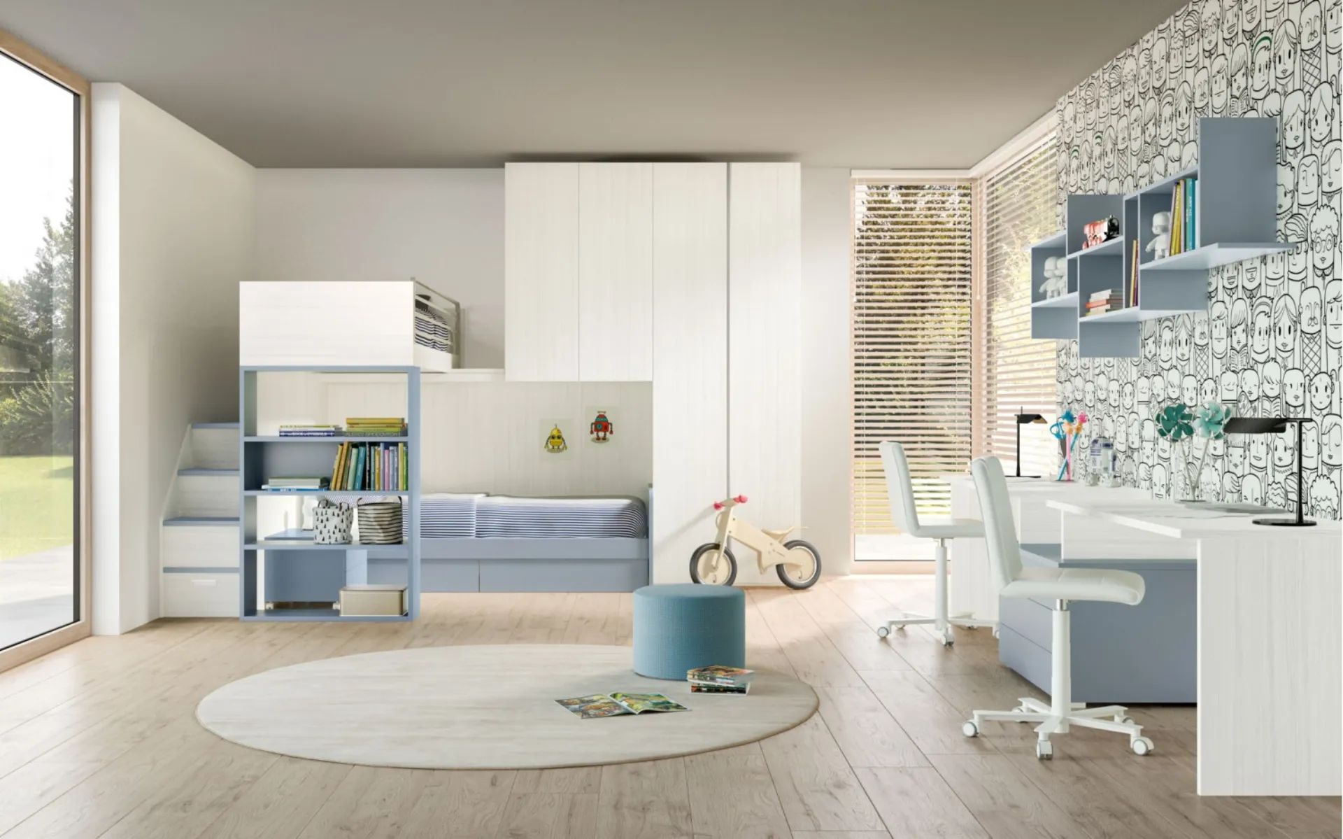 La Camera con soppalco Room 166 di Zg Mobili in melaminico è un ambiente articolato da decorare con cura, unendo diversi elementi accessori su misura. Zg Mobili soddisfa il gusto dei bambini e le esigenze degli adulti con le sue Camerette moderne a soppalco, ideali per esigenze di ogni tipo. Colori di tendenza e soluzioni progettuali ad hoc contraddistinguono le più esclusive composizioni del noto e conosciuto brand che proponiamo nel nostro showroom. Vieni nel nostro showroom e potrai visionare in prima persona tutte le più esclusive composizioni d'arredo a soppalco moderne di Zg Mobili per i più piccoli.