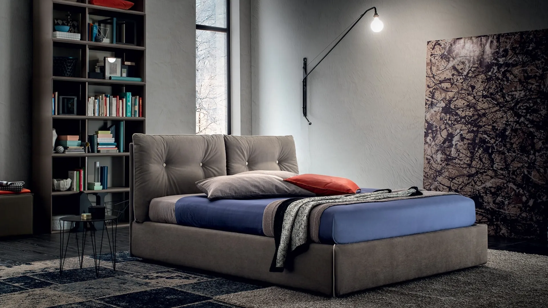 Scopri nel nostro showroom un ricco catalogo di Letti imbottiti, mobili ed elementi accessori per la camera da letto dei migliori produttori. Affidabilità dei materiali e grande comfort sono gli ingredienti che connotano tutti i prodotti della firma, tra cui anche il letto in tessuto in foto. Se vuoi creare un'atmosfera intima e rilassante, il modello visibile in foto fa al caso tuo: nella stanza del relax dovrai creare un'atmosfera rilassante, per farti ritemprare le energie psichiche e fisiche come meritate. Se vuoi progettare spazi moderni, ti aspettiamo per farti vedere la nostra linea di Arredamento Casa per realizzare il tuo progetto su misura.