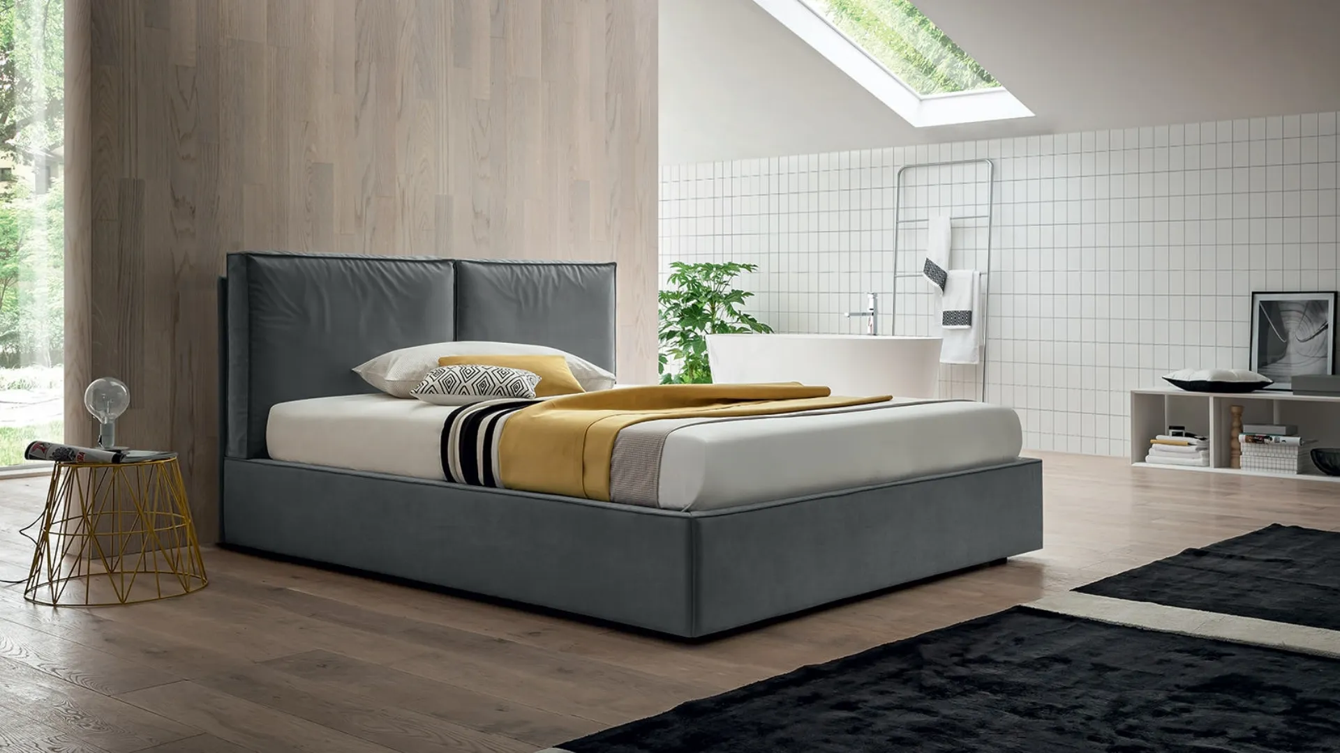 Se vuoi assicurarti la comodità più totale nei tuoi momenti di relax, scegli i Letti matrimoniali moderni in tessuto come il modello presente in foto. Scopri una ricca gamma di letti imbottiti dei migliori produttori di Arredamento Casa disponibili nel nostro punto vendita e ottimizza la tua zona notte. La zona notte è l'ambiente di casa che più riflette il gusto di chi la frequenta, interno per eccellenza dedicato al relax, alla distensione e alla riservatezza. Il Letto con testiera George di Felis è una delle più belle soluzioni del marchio, specialista del buon sonno, capace di assicurare praticità, comfort e uno stile unico.