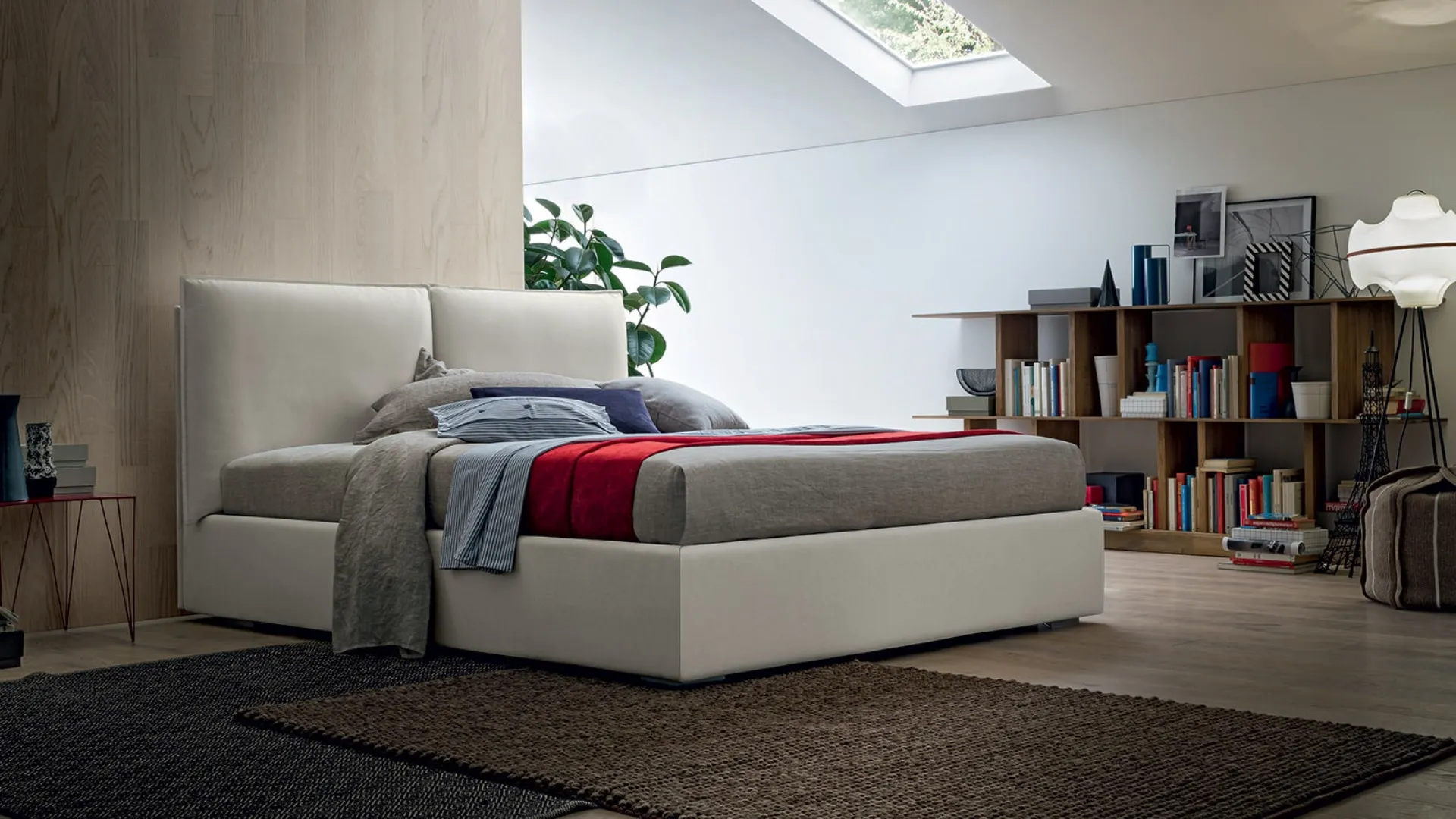 Se desideri allestire spazi moderni, ti aspettiamo per illustrarti la nostra profilo di Arredamento Casa per realizzare il tuo concept su misura. Durevolezza delle finiture e grande comfort sono gli aspetti che connotano tutti i prodotti del marchio, tra cui anche il letto in tessuto nell'immagine. Scopri in negozio una ricca gamma di Letti imbottiti, mobili e complementi per la zona notte delle migliori marche. Se desideri ricreare un'atmosfera intima e distensiva, il modello presente in foto fa per te: nella stanza del relax dovrai ricreare un'atmosfera distensiva, per farti rigenerare le energie psichiche e fisiche ogni notte.