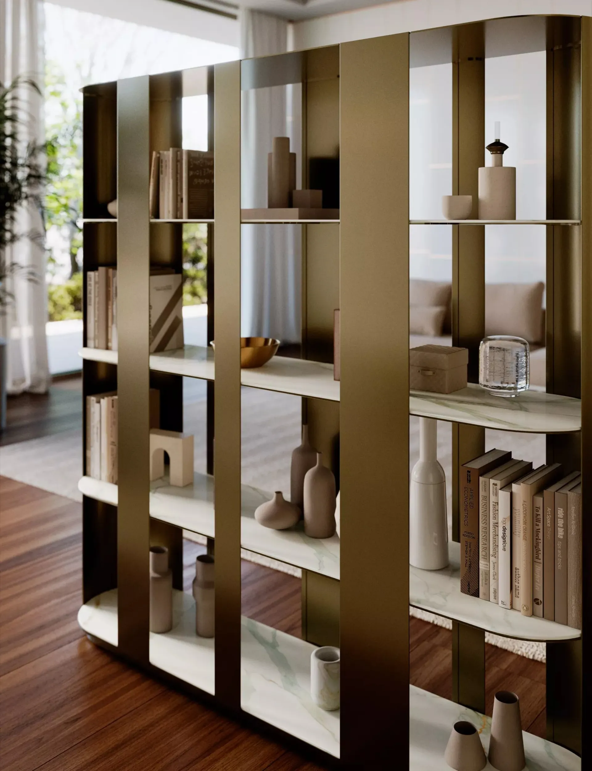 Il rinomato brand produce Librerie divisorie design in una grande varietà di conformazioni, dimensioni, texture e cromie per garantire la massima versatilità. Scopri le più originali soluzioni salvaspazio, come ilmobile soggiorno in foto in metallo, e dai vita al living operativo e pratico che hai sempre sognato. Potrai utilizzare questi mobili come una superficie di appoggio plurifunzionale, per riporci sia oggetti d'uso quotidiano, sia tipicamente decorativo. Contattando i nostri arredatori potrai avere info di ogni tipo sulla Libreria divisoria Helena di Bontempi qui visibile.