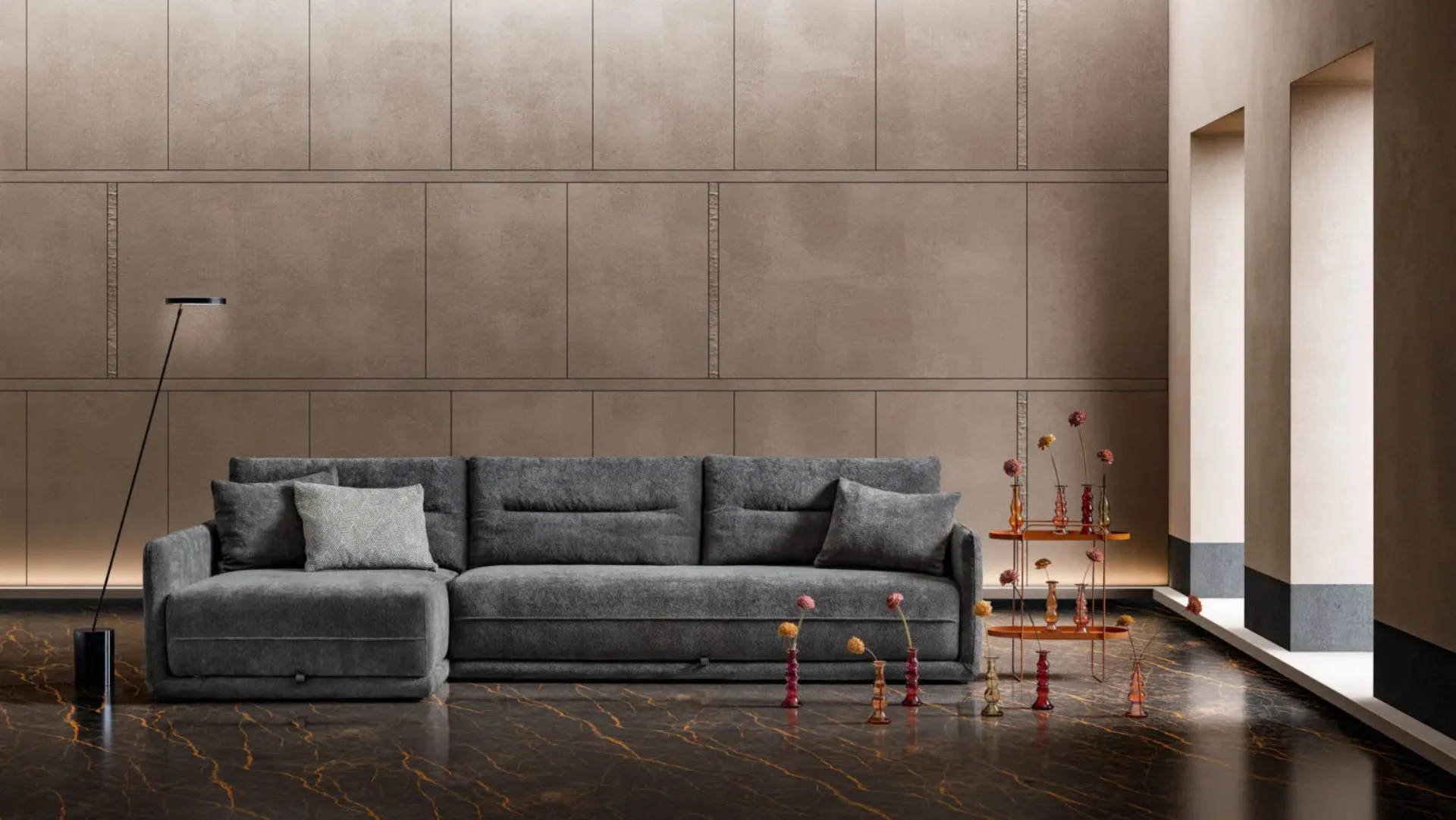 Se vuoi divani e poltrone con penisola come il modello nella fotografia, connotato dai volumi che invitano a passare i tuoi momenti di riposo. La serie di divani della marca in questione propone svariate possibilità originali per personalizzare il soggiorno all'insegna di praticità, comfort e stile. Il catalogo Samoa rende disponibili svariate possibilità per personalizzare l'ambiente all'insegna di praticità e valore estetico, mettendo al centro il tuo comfort. I nostri Salotti sono pensati per essere abbinati a accessori di ogni genere, come tavolini, lampade e piantane o in combinazione con ulteriori divani in tessuto.